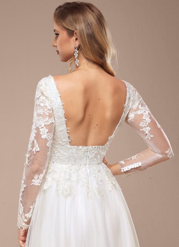 - Manches longues en dentelle, offrant grâce et sophistication.